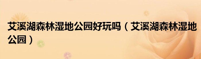 关于艾溪湖森林湿地公园好玩吗,艾溪湖森林湿地公园这个很多人还不知道,今天菲菲来为大家解答以上的问题,现在让我们一起来看看吧!