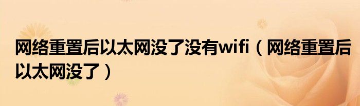 大家好,小晋来为大家解答以下问题,关于网络重置后以太网没了没有wifi,网络重置后以太网没了很多人还不知道,今天让我们一起来看看吧!