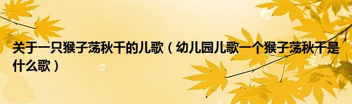 关于关于一只猴子荡秋千的儿歌,幼儿园儿歌一个猴子荡秋千是什么歌这个很多人还不知道,今天菲菲来为大家解答以上的问题,现在让我们一起来看看吧!