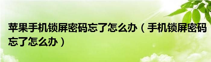 苹果手机锁屏密码忘了怎么办(手机锁屏密码忘了怎么办)