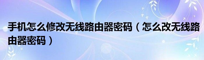 如何修改无线路由器的密码?