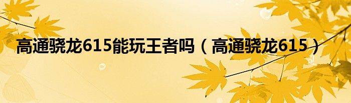 高通骁龙615能玩王者吗(高通骁龙615)