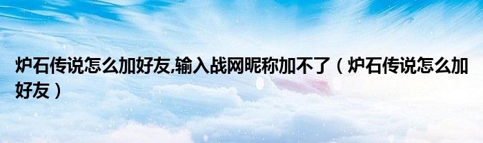关于炉石传说怎么加好友,输入战网昵称加不了,炉石传说怎么加好友这个很多人还不知道,今天菲菲来为大家解答以上的问题,现在让我们一起来看看吧!