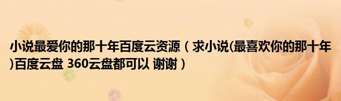 关于小说最爱你的那十年百度云资源,求小说(最喜欢你的那十年)百度云盘 360云盘都可以 谢谢这个很多人还不知道,今天菲菲来为大家解答以上的问题,现在让我们一起来看看吧!