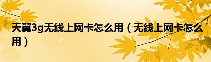 大家好,来宝来为大家解答以下问题,天翼3g无线上网卡怎么用,无线上网卡怎么用很多人还不知道,今天让我们一起来看看吧!