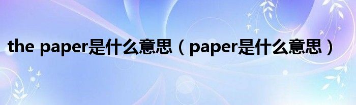 thepaper是什么意思(paper是什么意思)