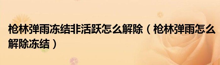 枪林弹雨冻结非活跃怎么解除(枪林弹雨怎么解除冻结)