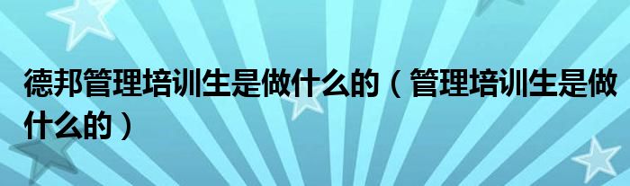 德邦管理培训生是做什么的(管理培训生是做什么的)