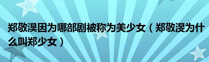 大家好,小晋来为大家解答以下问题,关于郑敬淏因为哪部剧被称为美少女,郑敬渂为什么叫郑少女很多人还不知道,今天让我们一起来看看吧!