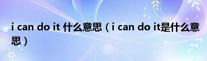 关于i can do it 什么意思,i can do it是什么意思这个很多人还不知道,今天菲菲来为大家解答以上的问题,现在让我们一起来看看吧!