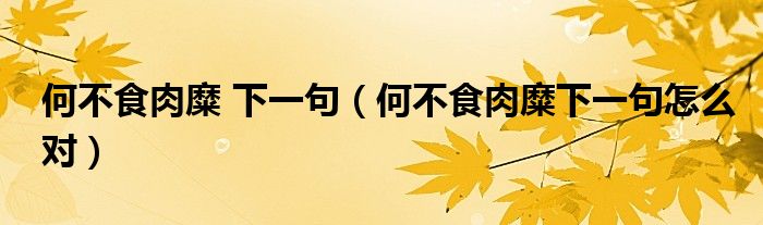 大家好,小晋来为大家解答以下问题,关于何不食肉糜 下一句,何不食肉糜下一句怎么对很多人还不知道,今天让我们一起来看看吧!