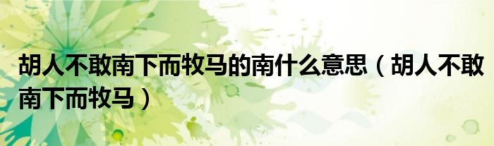 大家好,小晋来为大家解答以下问题,关于胡人不敢南下而牧马的南什么意思,胡人不敢南下而牧马很多人还不知道,今天让我们一起来看看吧!