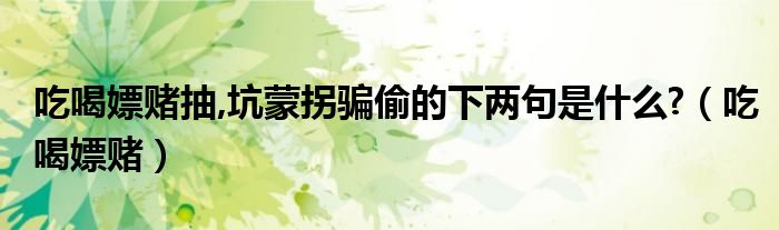 大家好,小晋来为大家解答以下问题,关于吃喝嫖赌抽,坑蒙拐骗偷的下两句是什么?,吃喝嫖赌很多人还不知道,今天让我们一起来看看吧!