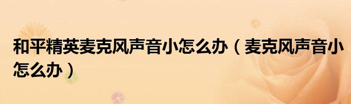 关于和平精英麦克风声音小怎么办,麦克风声音小怎么办这个很多人还不知道,今天菲菲来为大家解答以上的问题,现在让我们一起来看看吧!