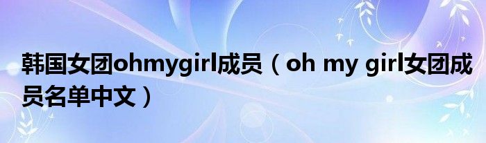 关于韩国女团ohmygirl成员,oh my girl女团成员名单中文这个很多人还不知道,今天菲菲来为大家解答以上的问题,现在让我们一起来看看吧!