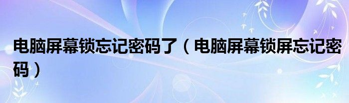 关于电脑屏幕锁忘记密码了,电脑屏幕锁屏忘记密码这个很多人还不知道,今天菲菲来为大家解答以上的问题,现在让我们一起来看看吧!
