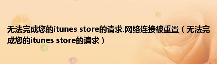 无法完成您的itunes store的请求.网络连接被重置,无法完成您的itunes store的请求很多人还不知道,乐乐来为大家解答以上问题,现在让我们一起来看看吧!