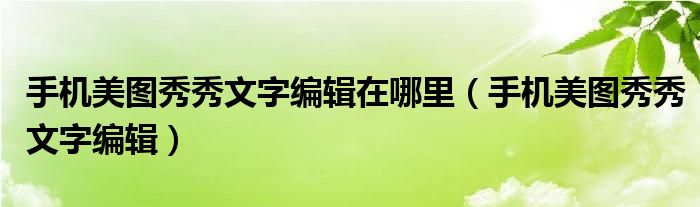 大家好,小晋来为大家解答以下问题,关于手机美图秀秀文字编辑在哪里,手机美图秀秀文字编辑很多人还不知道,今天让我们一起来看看吧!
