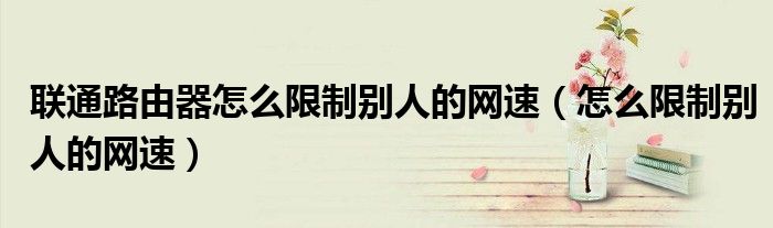 大家好,来宝来为大家解答以下问题,联通路由器怎么限制别人的网速,怎么限制别人的网速很多人还不知道,今天让我们一起来看看吧!