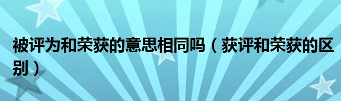 关于被评为和荣获的意思相同吗,获评和荣获的区别这个很多人还不知道,今天菲菲来为大家解答以上的问题,现在让我们一起来看看吧!