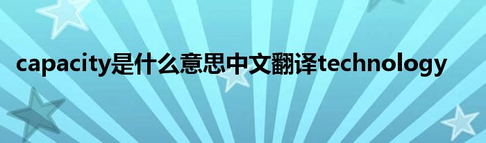 关于capacity是什么意思中文翻译technology这个很多人还不知道,今天菲菲来为大家解答以上的问题,现在让我们一起来看看吧!