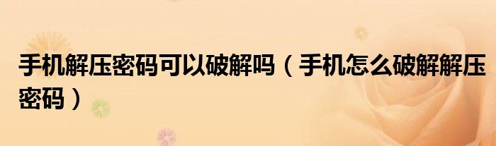 大家好,小晋来为大家解答以下问题,关于手机解压密码可以破解吗,手机怎么破解解压密码很多人还不知道,今天让我们一起来看看吧!