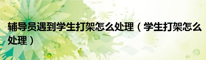 辅导员遇到学生打架怎么处理(学生打架怎么处理)