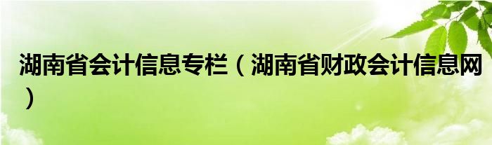湖南省会计信息专栏(湖南省财政会计信息网)