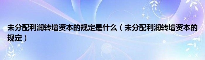 关于未分配利润转增资本的规定是什么,未分配利润转增资本的规定这个很多人还不知道,今天菲菲来为大家解答以上的问题,现在让我们一起来看看吧!