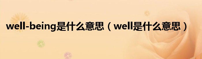 关于well-being是什么意思,well是什么意思这个很多人还不知道,今天菲菲来为大家解答以上的问题,现在让我们一起来看看吧!