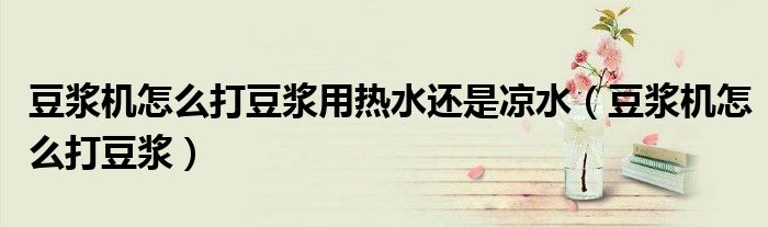 关于豆浆机怎么打豆浆用热水还是凉水,豆浆机怎么打豆浆这个很多人还不知道,今天菲菲来为大家解答以上的问题,现在让我们一起来看看吧!