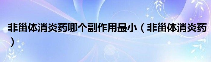 关于非甾体消炎药哪个副作用最小,非甾体消炎药这个很多人还不知道,今天菲菲来为大家解答以上的问题,现在让我们一起来看看吧!