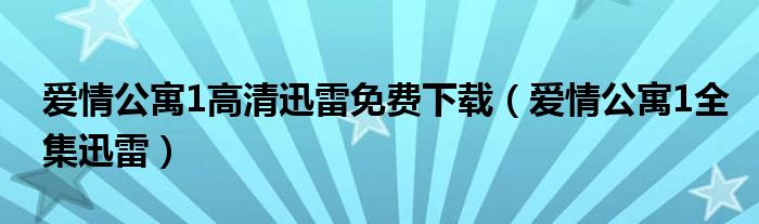 关于爱情公寓1高清迅雷免费下载,爱情公寓1全集迅雷这个很多人还不知道,今天菲菲来为大家解答以上的问题,现在让我们一起来看看吧!