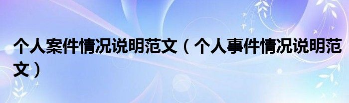 大家好,小晋来为大家解答以下问题,关于个人案件情况说明范文,个人事件情况说明范文很多人还不知道,今天让我们一起来看看吧!