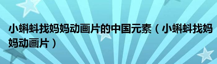 关于小蝌蚪找妈妈动画片的中国元素,小蝌蚪找妈妈动画片这个很多人还不知道,今天菲菲来为大家解答以上的问题,现在让我们一起来看看吧!