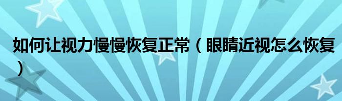 关于如何让视力慢慢恢复正常,眼睛近视怎么恢复这个很多人还不知道,今天菲菲来为大家解答以上的问题,现在让我们一起来看看吧!