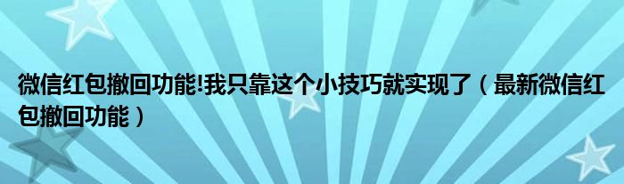 大家好,小晋来为大家解答以下问题,关于微信红包撤回功能!我只靠这个小技巧就实现了,最新微信红包撤回功能很多人还不知道,今天让我们一起来看看吧!
