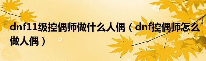 dnf11级控偶师做什么人偶(dnf控偶师怎么做人偶)