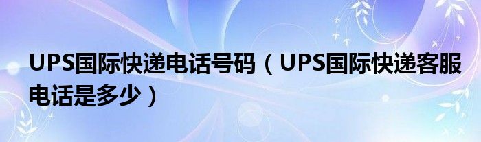 关于UPS国际快递电话号码,UPS国际快递客服电话是多少这个很多人还不知道,今天菲菲来为大家解答以上的问题,现在让我们一起来看看吧!