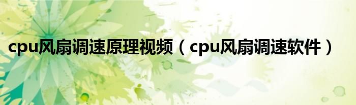 cpu风扇调速原理视频(cpu风扇调速软件)