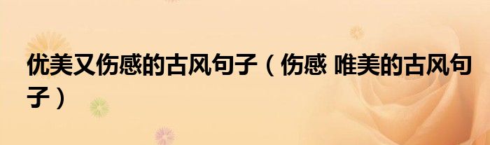 关于优美又伤感的古风句子,伤感 唯美的古风句子这个很多人还不知道,今天菲菲来为大家解答以上的问题,现在让我们一起来看看吧!