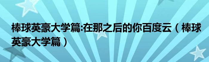 关于棒球英豪大学篇:在那之后的你百度云,棒球英豪大学篇这个很多人还不知道,今天菲菲来为大家解答以上的问题,现在让我们一起来看看吧!