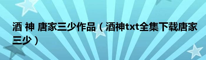 关于酒 神 唐家三少作品,酒神txt全集下载唐家三少这个很多人还不知道,今天菲菲来为大家解答以上的问题,现在让我们一起来看看吧!