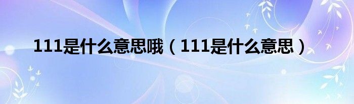 关于111是什么意思哦,111是什么意思这个很多人还不知道,今天菲菲来为大家解答以上的问题,现在让我们一起来看看吧!