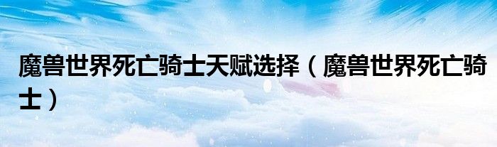 关于魔兽世界死亡骑士天赋选择,魔兽世界死亡骑士这个很多人还不知道,今天菲菲来为大家解答以上的问题,现在让我们一起来看看吧!