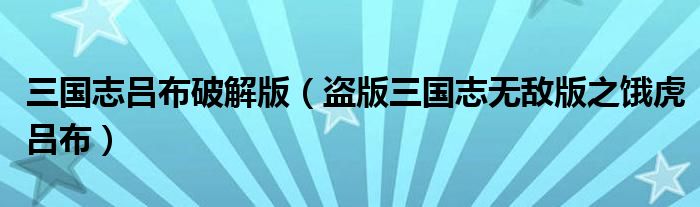关于三国志吕布破解版,盗版三国志无敌版之饿虎吕布这个很多人还不知道,今天菲菲来为大家解答以上的问题,现在让我们一起来看看吧!
