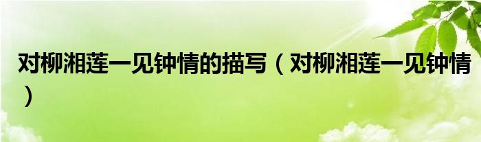 关于对柳湘莲一见钟情的描写,对柳湘莲一见钟情这个很多人还不知道,今天菲菲来为大家解答以上的问题,现在让我们一起来看看吧!