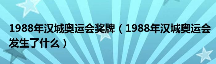 关于1988年汉城奥运会奖牌,1988年汉城奥运会发生了什么这个很多人还不知道,今天菲菲来为大家解答以上的问题,现在让我们一起来看看吧!