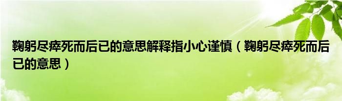 关于鞠躬尽瘁死而后已的意思解释指小心谨慎,鞠躬尽瘁死而后已的意思这个很多人还不知道,今天菲菲来为大家解答以上的问题,现在让我们一起来看看吧!