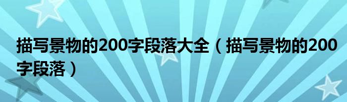 关于描写景物的200字段落大全,描写景物的200字段落这个很多人还不知道,今天菲菲来为大家解答以上的问题,现在让我们一起来看看吧!